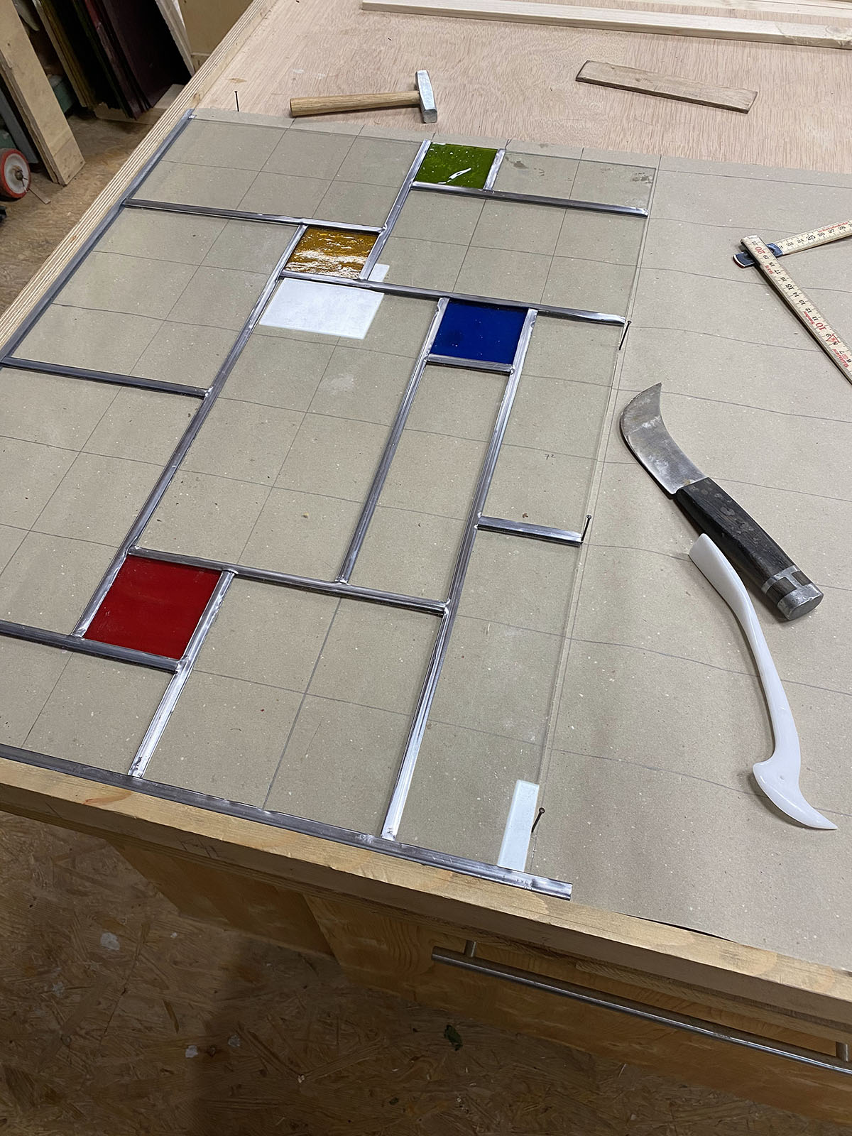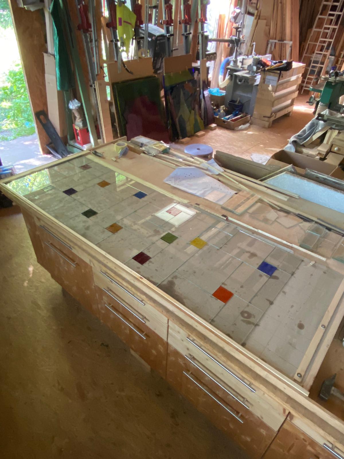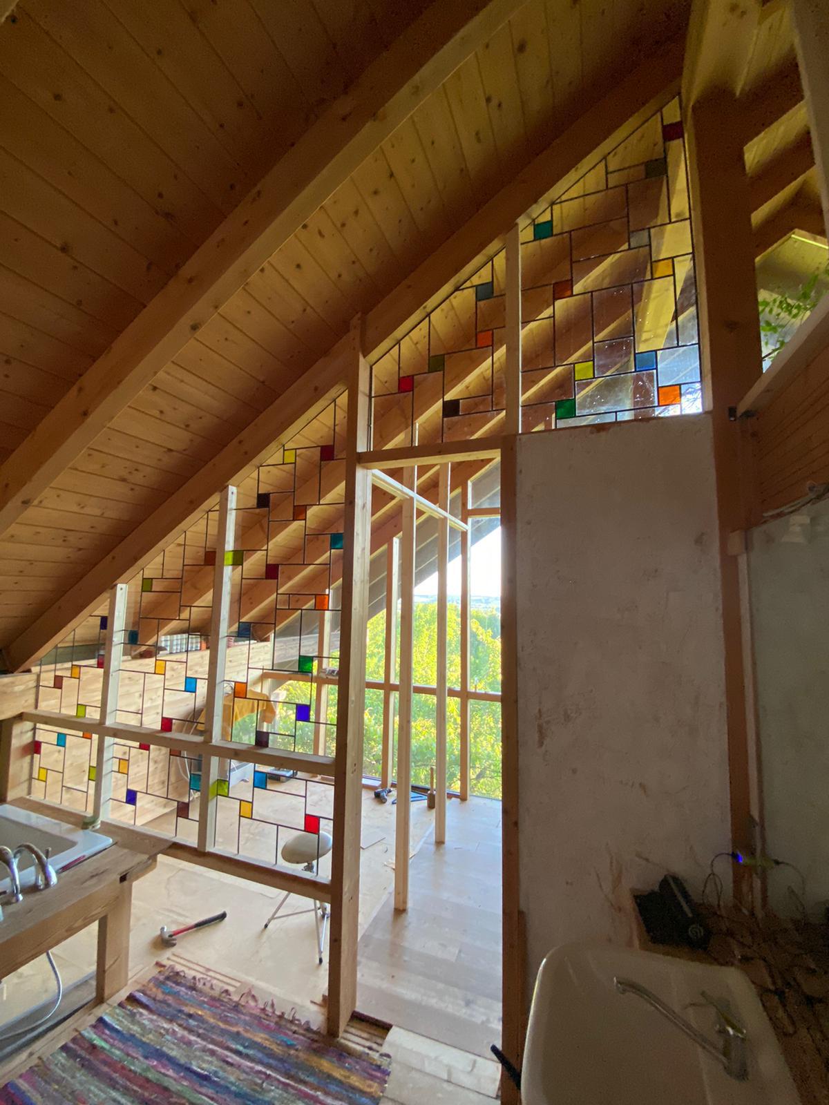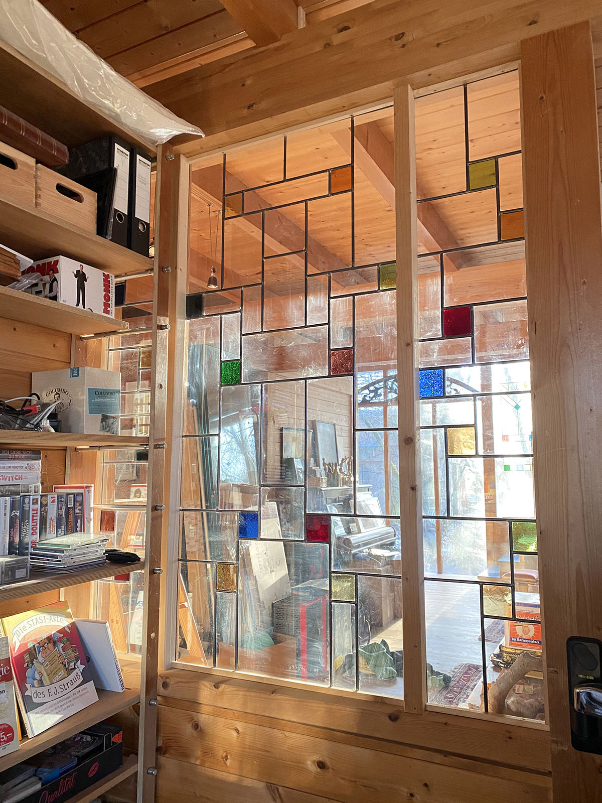 Verglasung des Ateliers über meiner Schreinerei in Forstern. Die Scheiben habe ich beim Verlassen der Werkstatt ausgebaut und sie warten auf einen neuen Einsatz