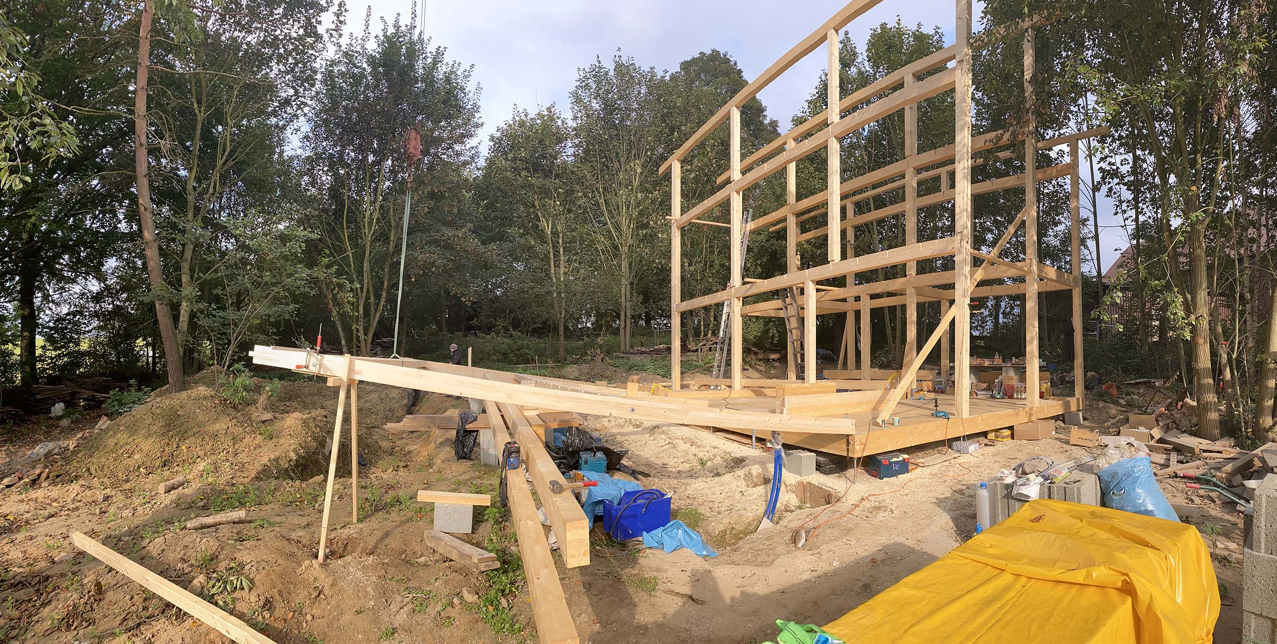 Die einzelnen Teile des tragenden Skeletts werden entweder vorbereitet angeliefert oder vor Ort, wie im aktuellen Projekt, gefertigt und innerhalb kürzester Zeit auf den Fundamenten und/oder der Kellerdecke errichtet.