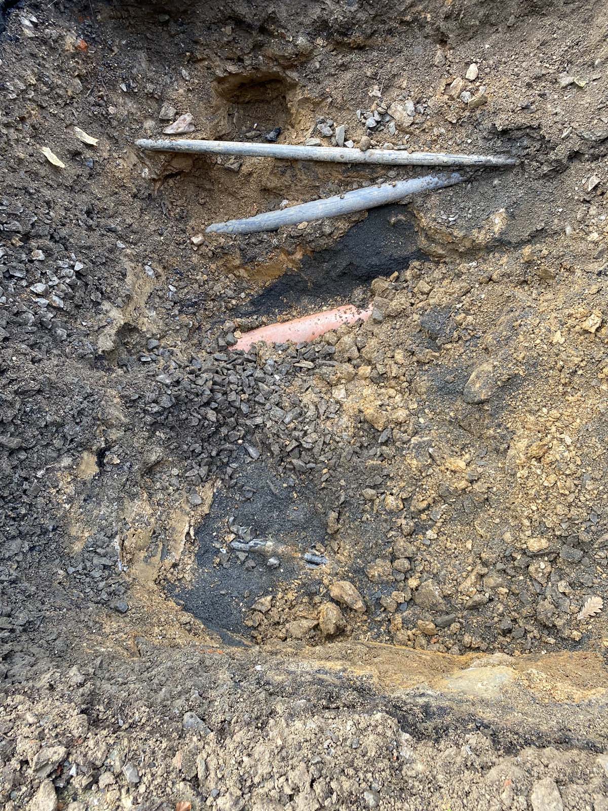16.11.2020 | 10:30 Uhr - in der Einfahrt wurde erfolgreich nach Wasserleitungen und Abwasserrohren gesucht, die Stadt führt diese Arbeiten aus