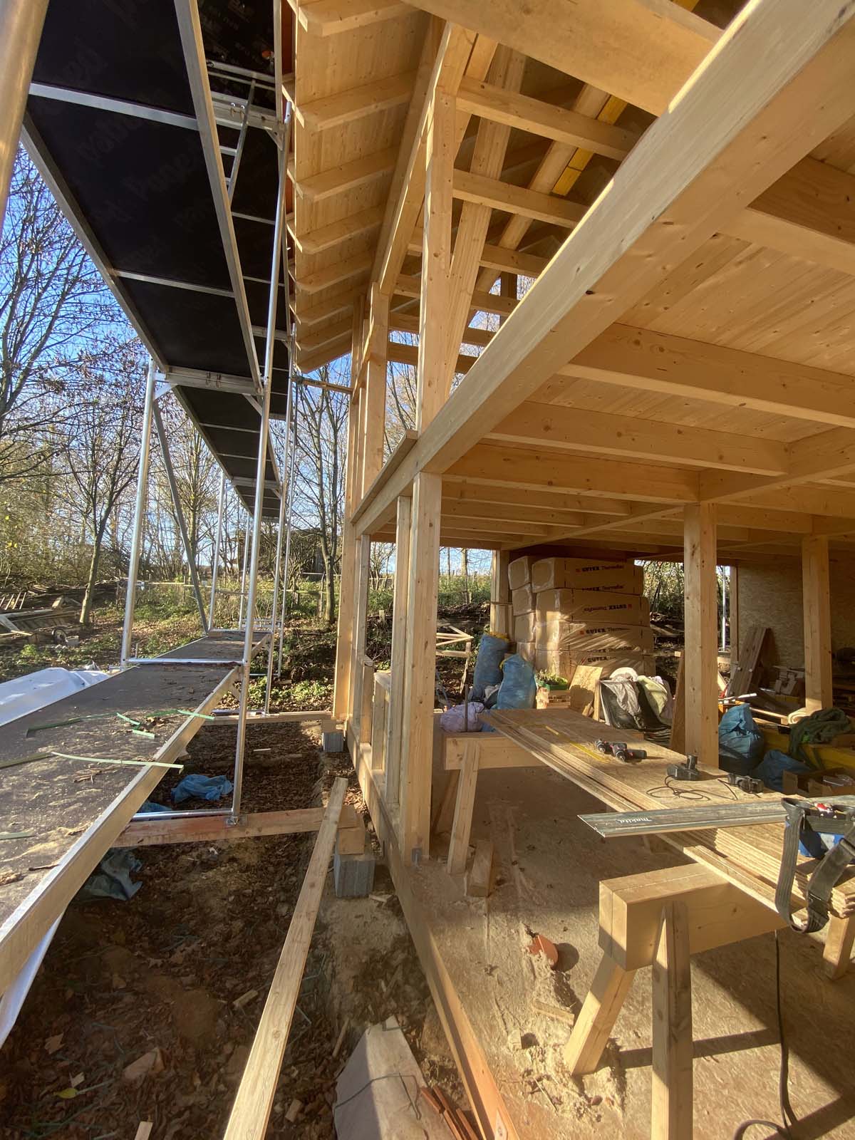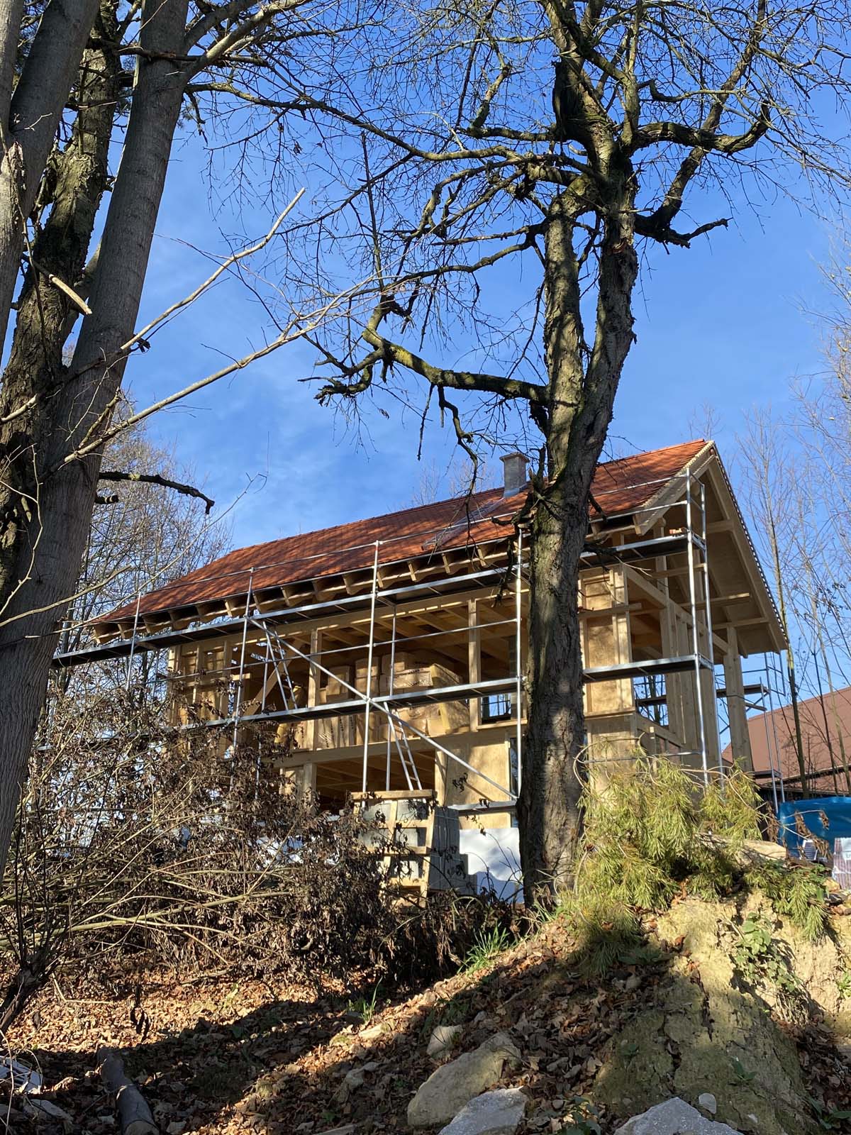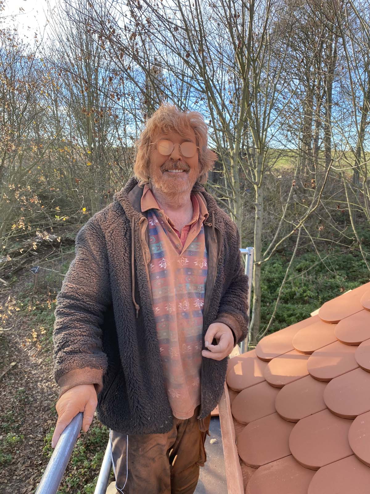 ein Haus entsteht ... Nordseite und First eindecken, Traufe einschneiden