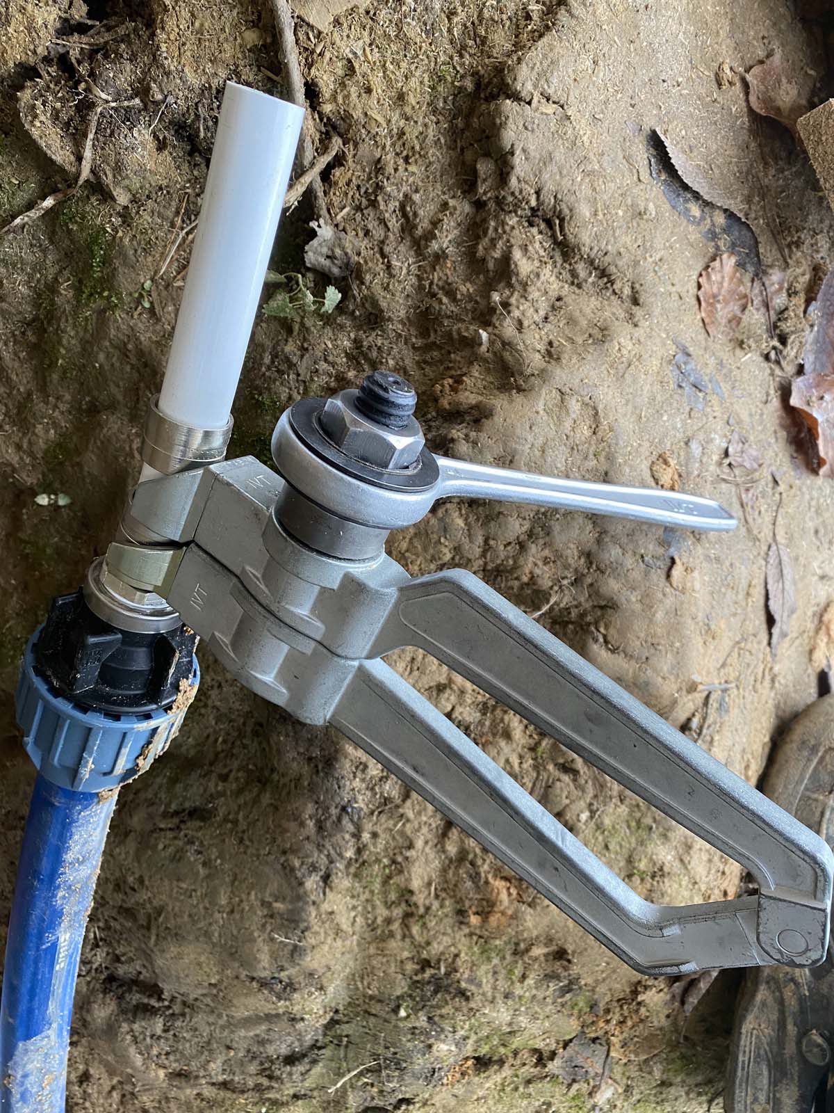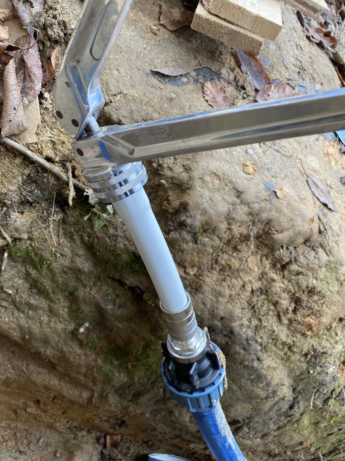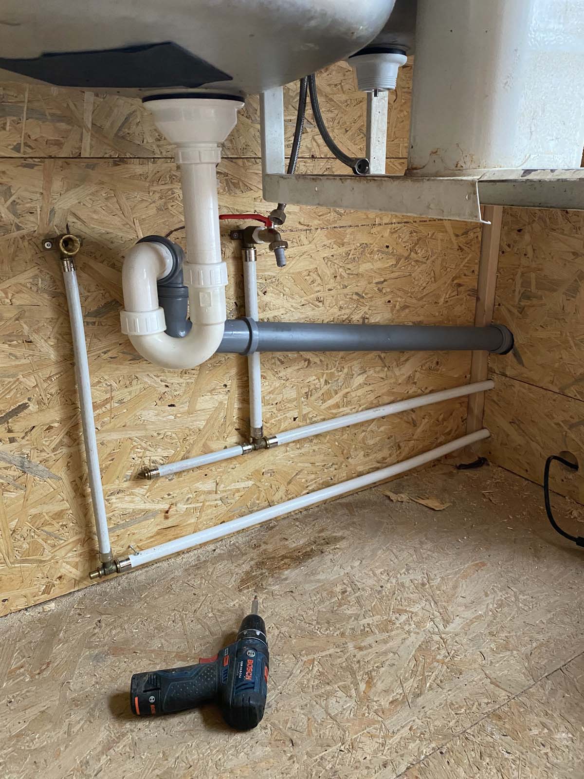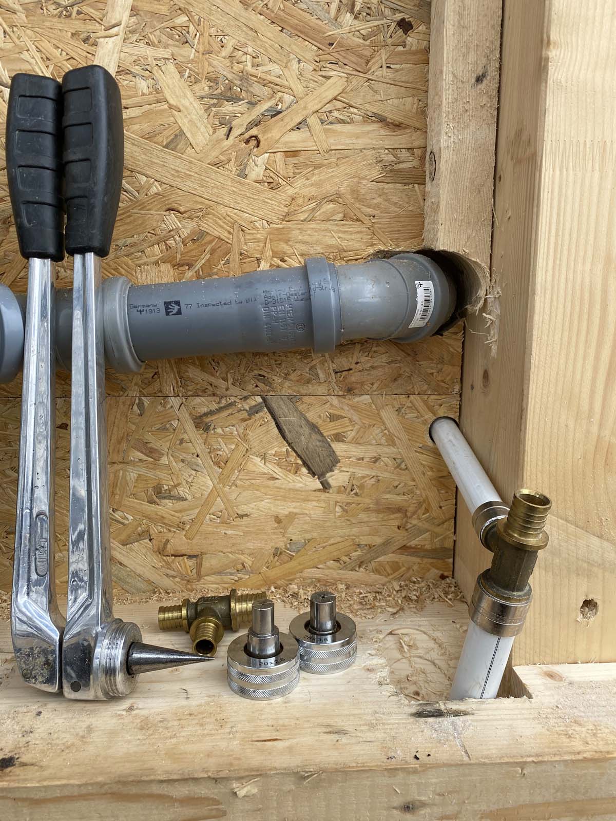 ...Übergang des 40iger Wasserrohres in das 25 mm Rohrsystem von IVT | Würth - die Werkzeuge stammen aus dem Jahr 1996 - manche Fittings auch