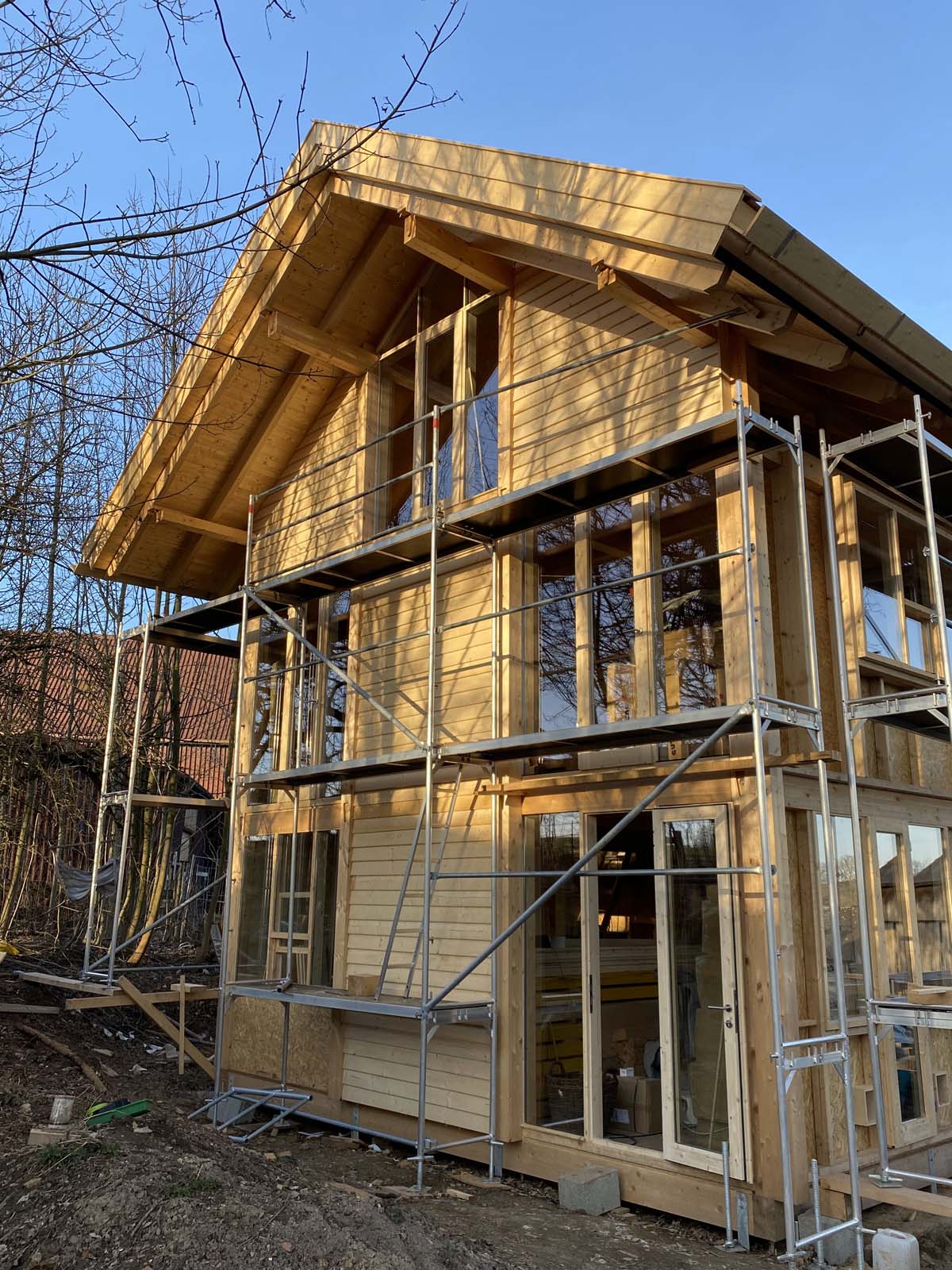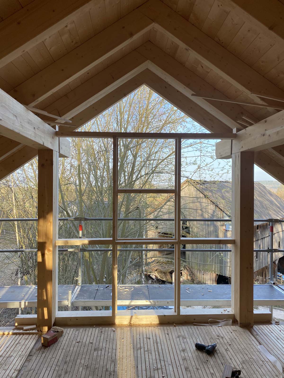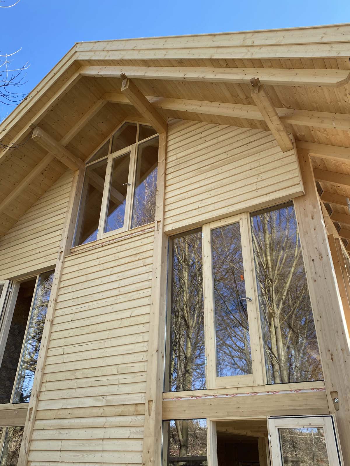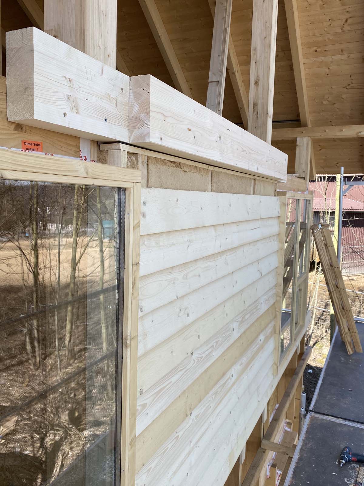 die Westfassade wird fertiggestellt, Glasleisten und Kleinigkeiten, die viel Zeit kosten,