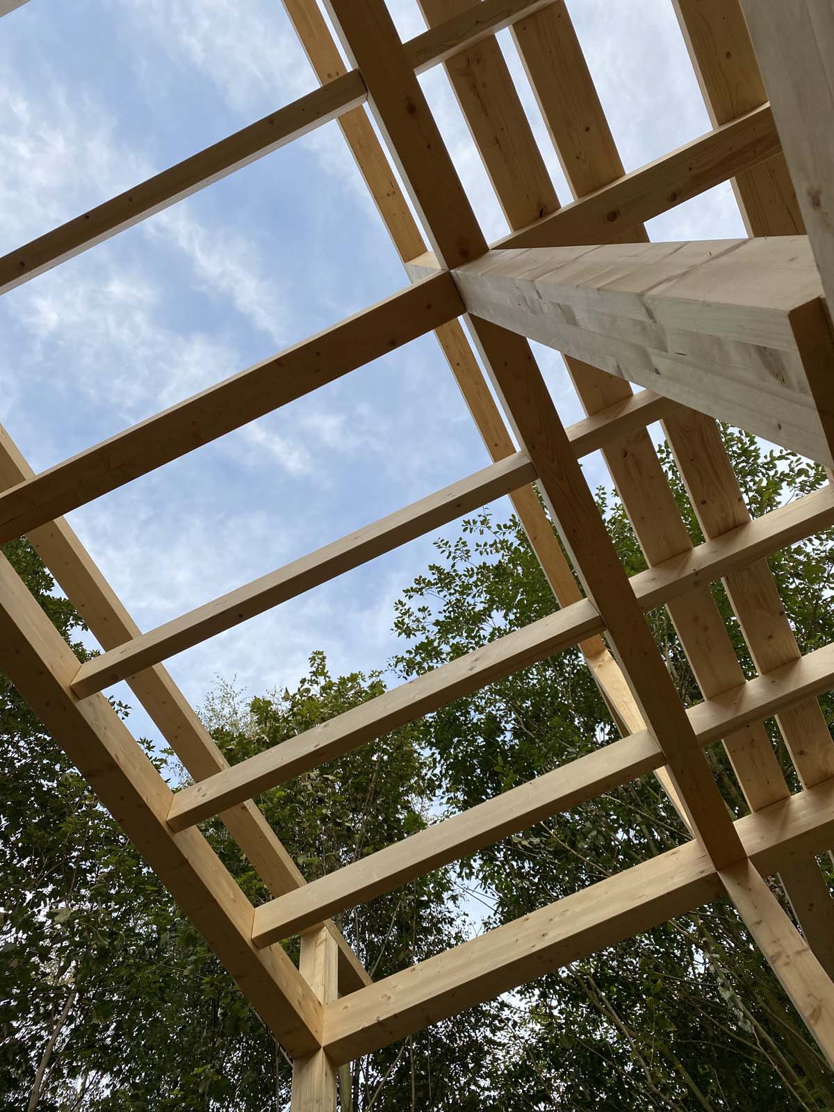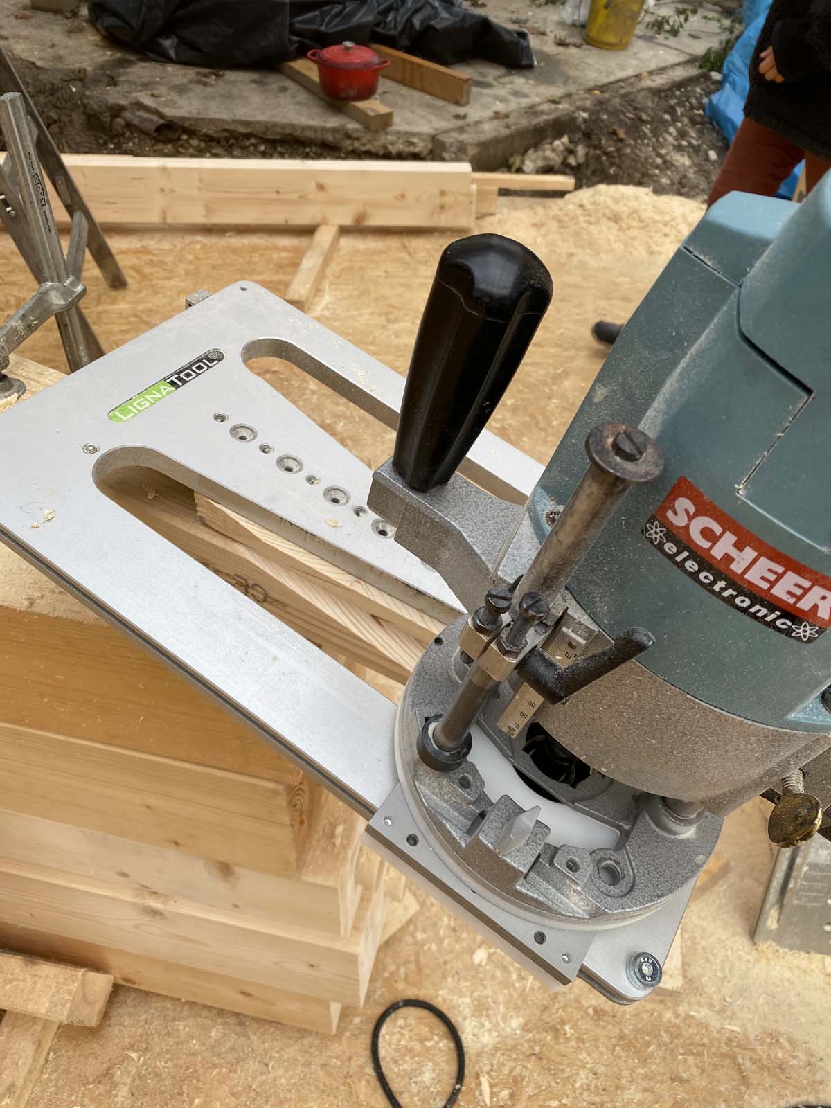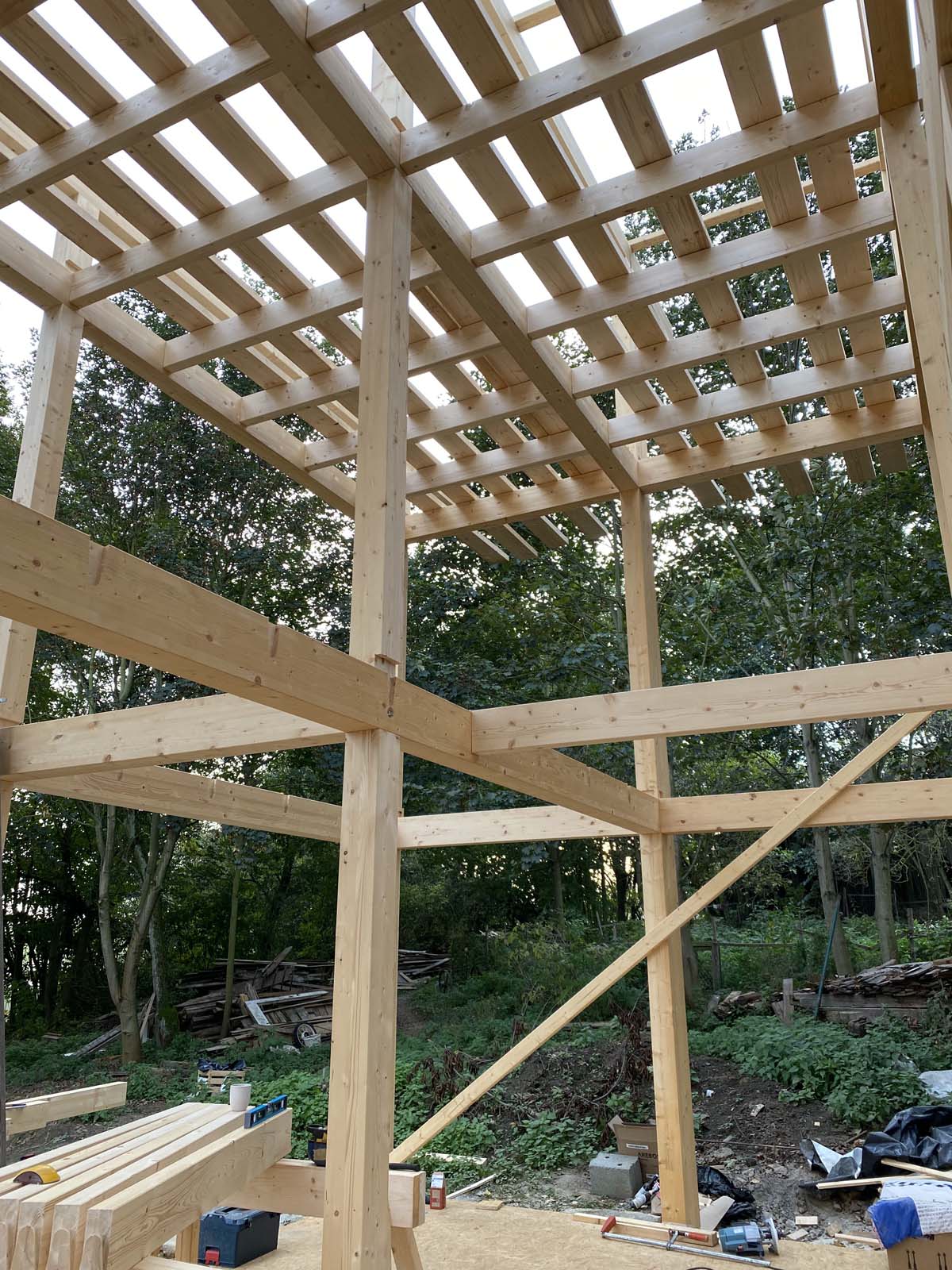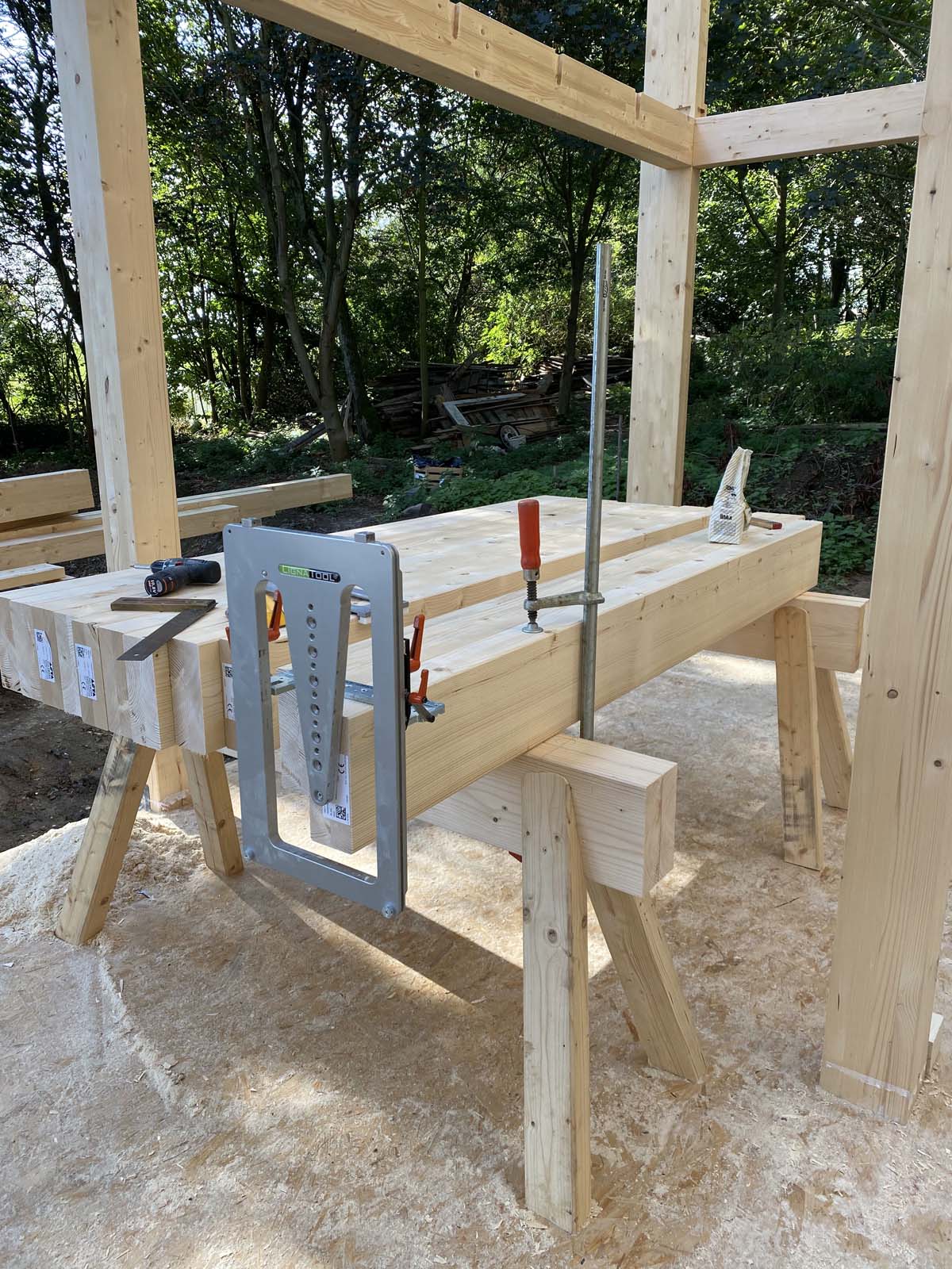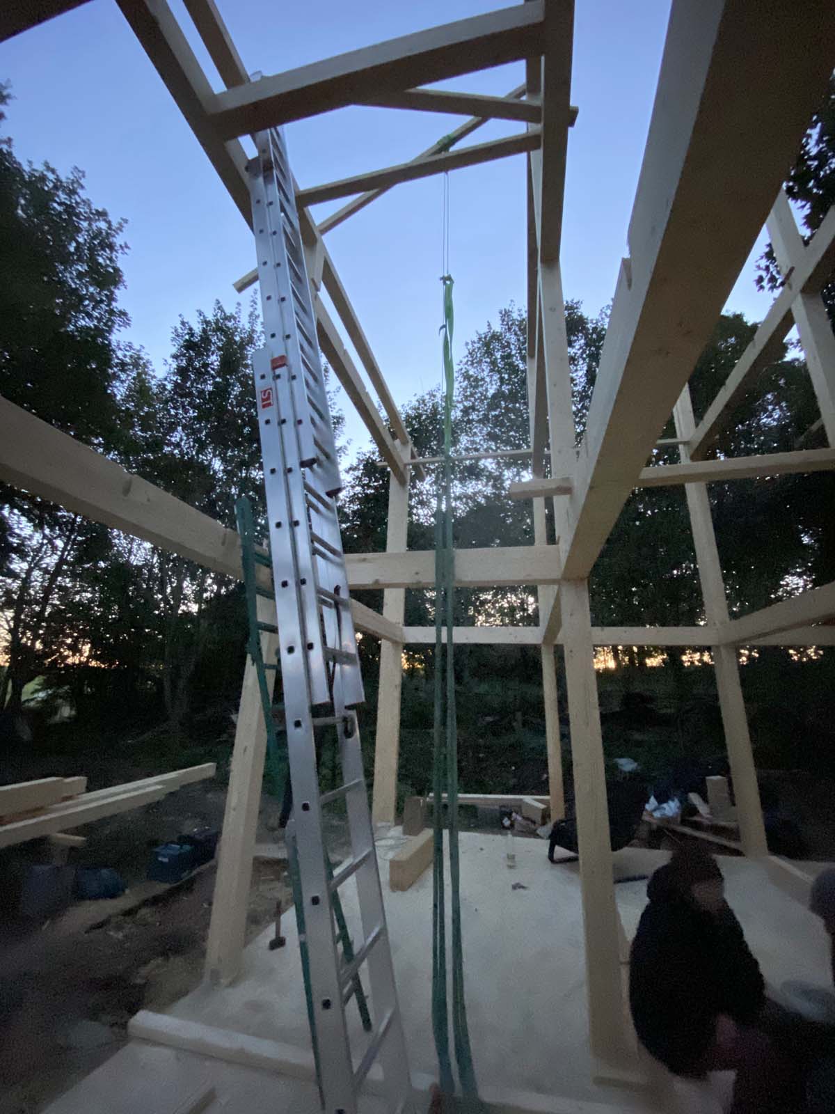 nächste Woche geht es ans Dach, Gerüst aufstellen und Sparren produzieren, das Wetter ist traumhaft für uns - goldener September und auch Oktober